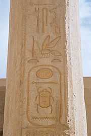 this King of the 'Great House' [p'r aA] as the person whose being is the Actual Image of the Unity of Principles which Provide for the Continuous Emergence of Nature....... person who was living under his rule, the pronounciation of this name was, and still is, simply the enunciation of a pattern of letter sounds. But, the acoustic images of these letter sounds were stored in the graphic images which the ancient Greeks saw as the sacred carvings of the Egyptians; and these Greeks made sense of this perception by making up the word written, now, in the American language: hieroglyphs. The sense of: 'sacred carvings,' fits as, one may observe today, this writing (which was already ancient even for the ancient Greeks) is seen everywhere throughout the Temples; and, of course, upon the, now rare, papyrus scrolls written by the Temple Scribes.